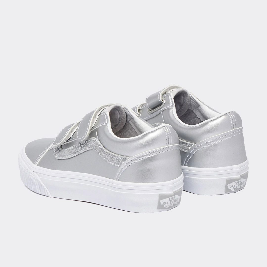 Εμπνευσμένα από το αυθεντικό Old Skool, τα βρεφικά sneakers Vans Old Skool V , έρχονται σε μικρότερη έκδοση. Τα βρεφικά sneakers διαθέτουν άνω μέρος από σουέτ και καμβά. Το ενισχυμένο τμήμα στα δάχτυλα παρέχει ανθεκτικότητα και η εξωτερική σόλα από καουτσούκ με μοτίβο waffle διατηρεί το ιστορικό στυλ.